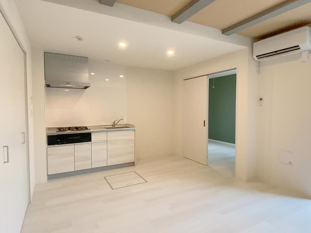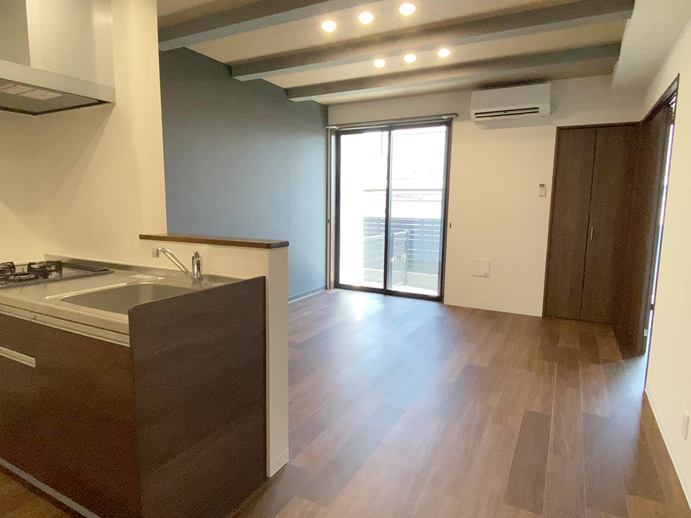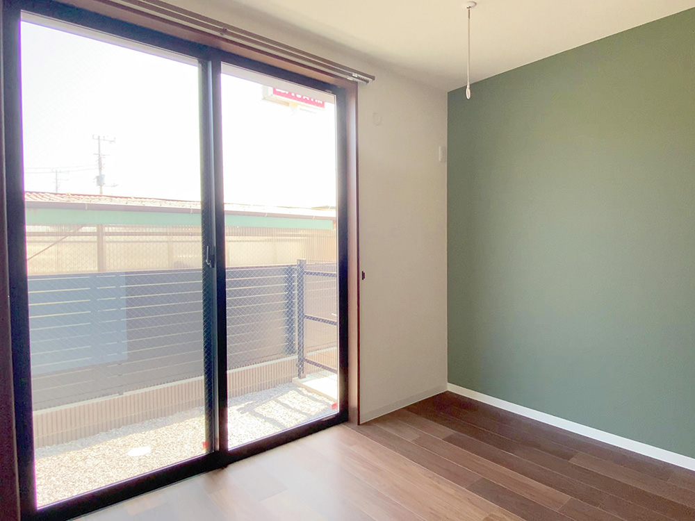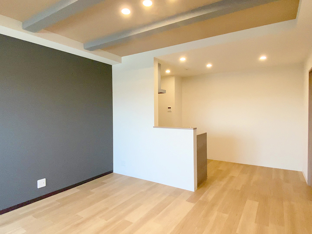 アクセントクロスや化粧梁など、シンプルでありながら目を引く内装が、居住空間を華やかに演出しています。