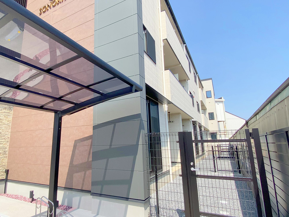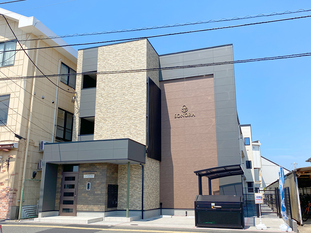 1LDK×12戸の賃貸アパートです。 都会的な印象を与える、高級感のある外観に仕上げました。 内装もこだわっており、日々の生活を豊かにするような、雰囲気の良い空間を創出しています。