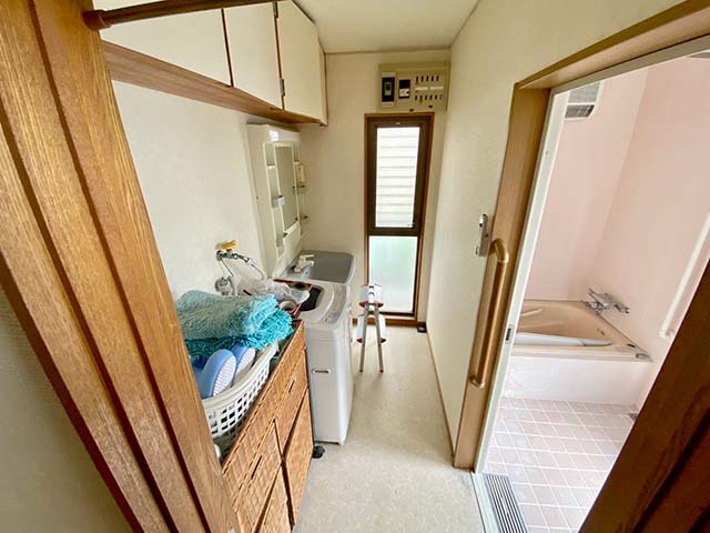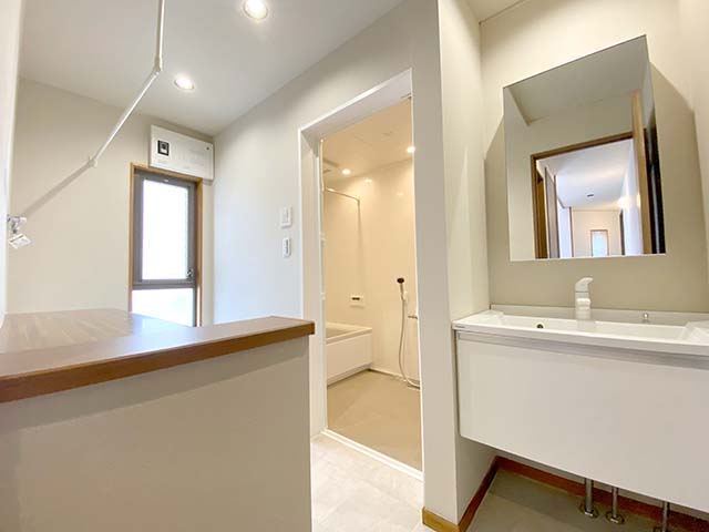 洗濯機と洗面台の位置を変更することで、脱衣所として利用していた場所を広げ、ユーティリティ兼用の空間にしました。