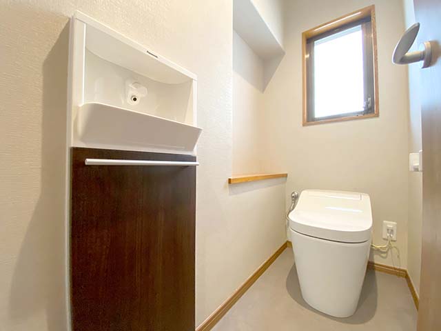 トイレは便器内を泡で掃除してくれるパナソニックの『アラウーノ』にしました。停電時や断水時でも手動で水を流すことが出来るトイレなので、万が一の時でも安心です🚽