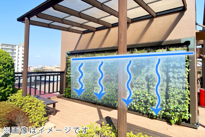 壁面内側に灌水(かんすい)用の配管が備えられており、自動で水を供給するシステムになっています。