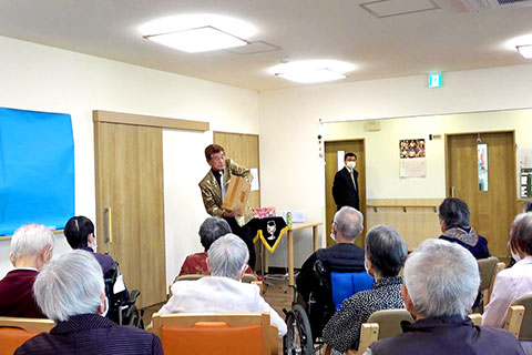 - 入居者様向けのマジックショーを開催しました。次々と繰り出されるマジックとユーモアのある語り口で、ご入居者様も楽しんでいただけたようです。