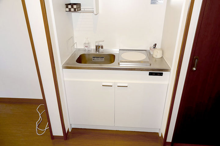 - 全お部屋1Kタイプのお部屋でトイレや収納、洗面台の他、、ミニキッチンや浴室、冷蔵庫スペースなども用意されています。