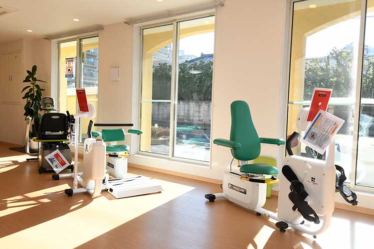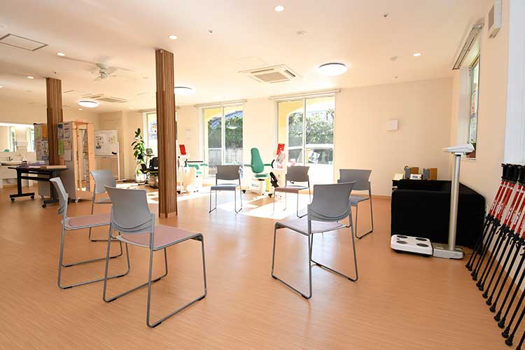 - デイサービスにはトレーニングマシーンが設置されています。 ご入居者様は、デイサービスの時間外に利用可能です。