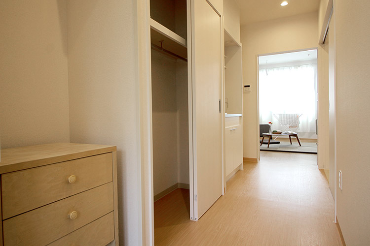 お部屋の入口ももちろんバリアフリー。収納もあります。