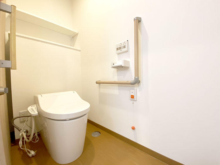- 洗面台、収納、ウォシュレット機能付き温座トイレ、エアコン、緊急用コール(2箇所)