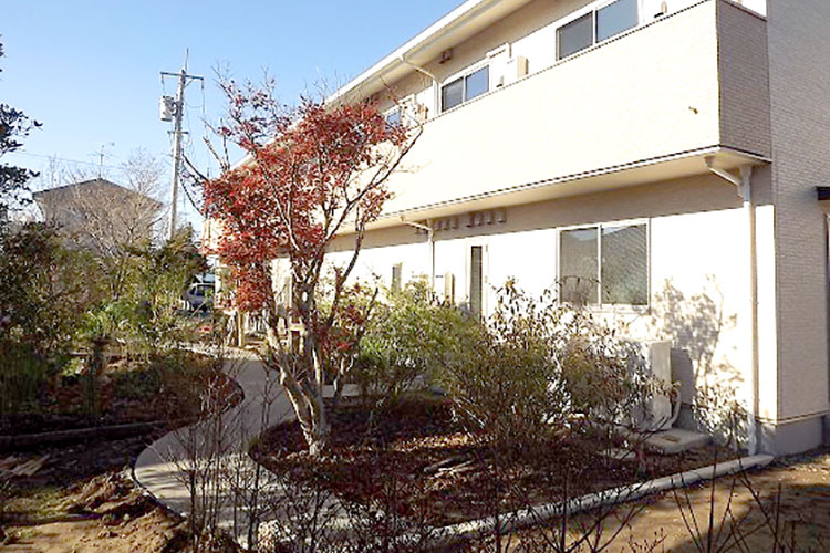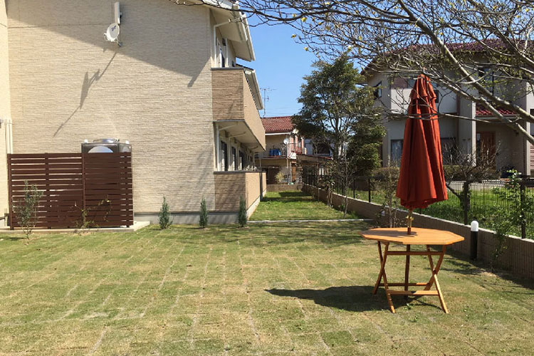 建物前には開放的なお庭があり、花や草木など自然が豊富です。