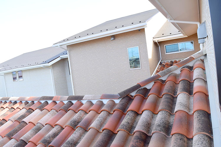 南欧風の屋根、大きな丸窓が特徴的な外観です。