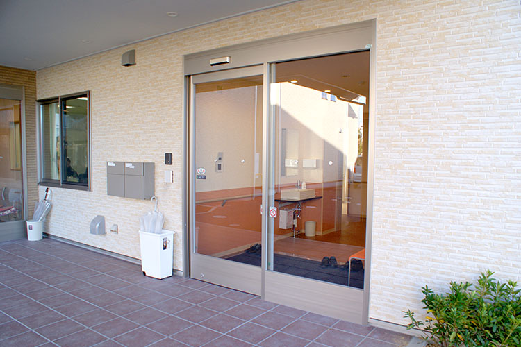 エントランスには屋根がついているため、雨の日でも濡れません。