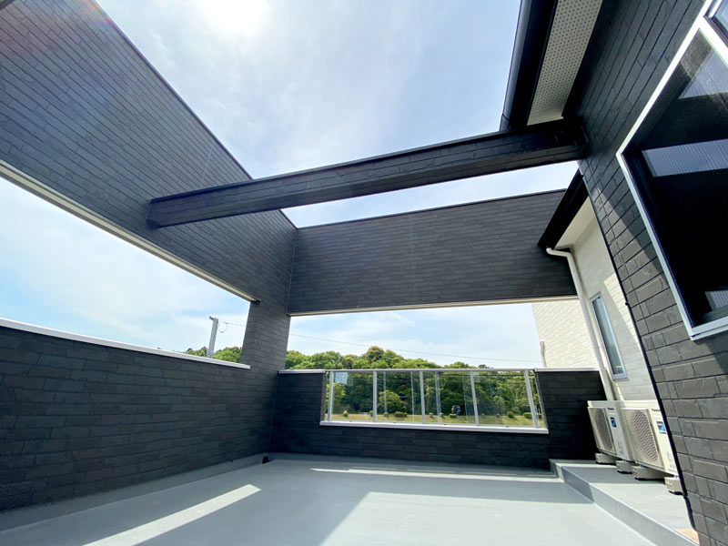 濃いグレー系と白系をベースにした落ち着いた雰囲気の外観です。