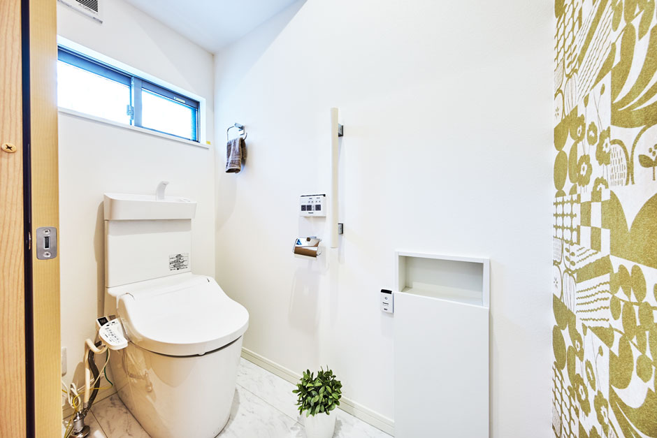 タンクレストイレについては、スッキリとした見た目で室内が広くなる他、凹凸が少ない形状のため掃除が簡単、また水道直結となるためタンクに水が溜まるのを待つことなく連続で流す事が可能です。