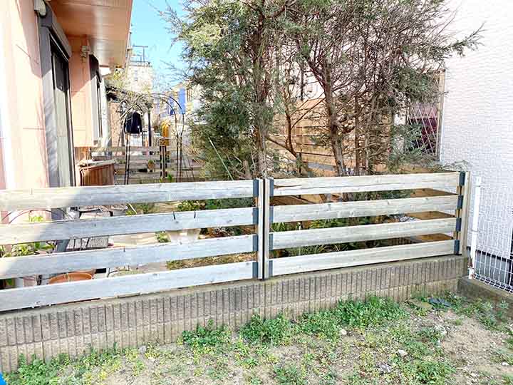 今回のリフォームは、「庭のウッドフェンスが朽ちてきたので取り替えたい」というご依頼でした。