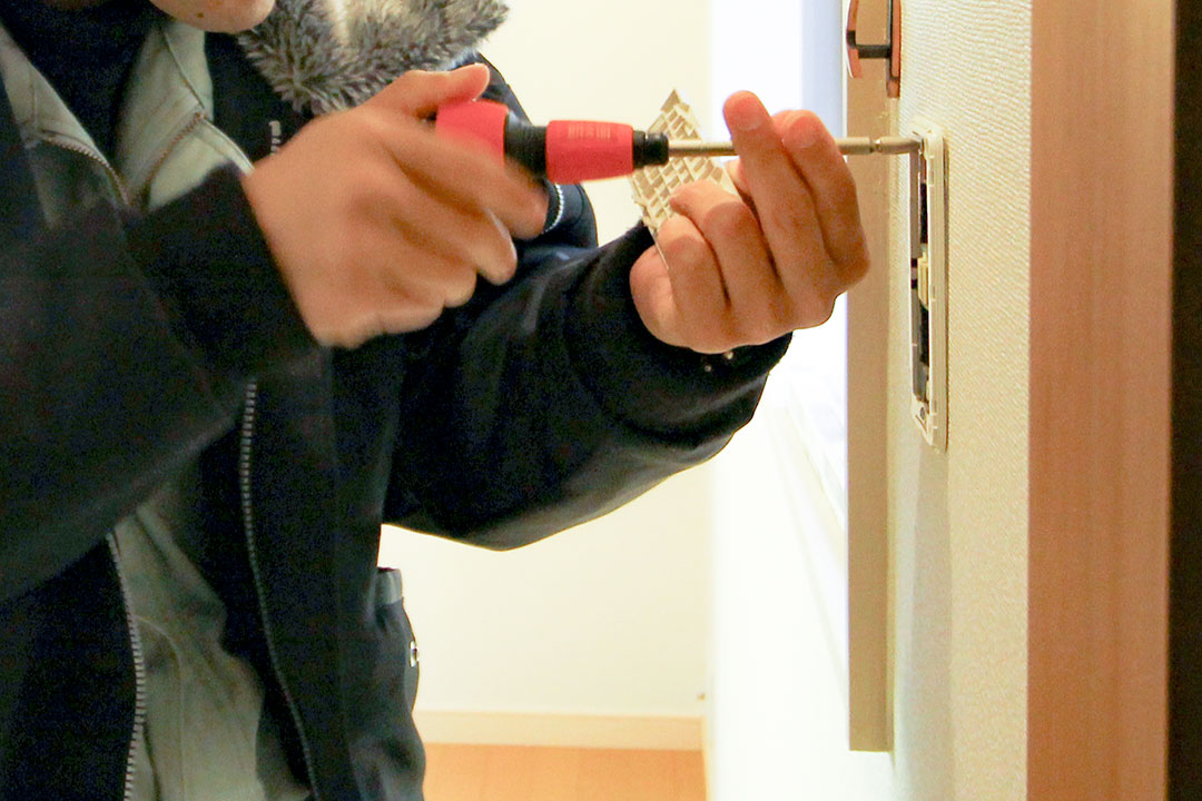 各工程において現場監督が検査を実施する他、建築部・不動産営業部のスタッフによる物件のクロスチェックも行われ、ドアの建付けや壁の傷み、汚れがないかを確認します。
