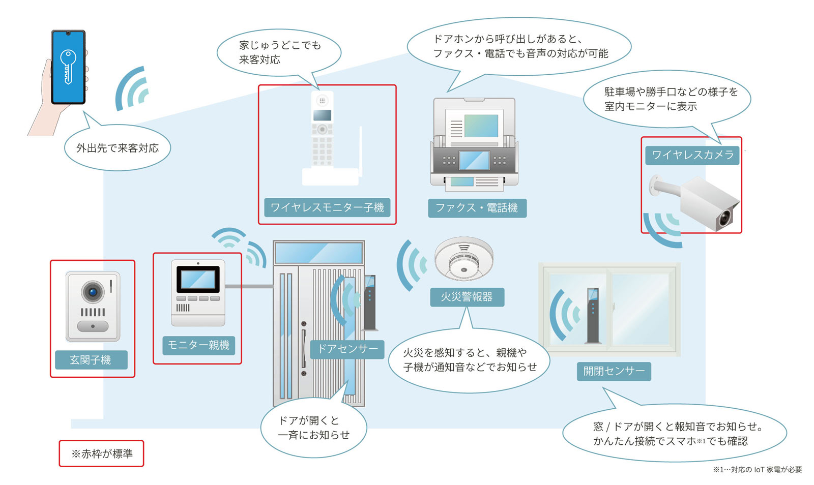 ドアホンとワイヤレスカメラ等と連携すれば、おうちの異変を離れた場所で知ることができます。